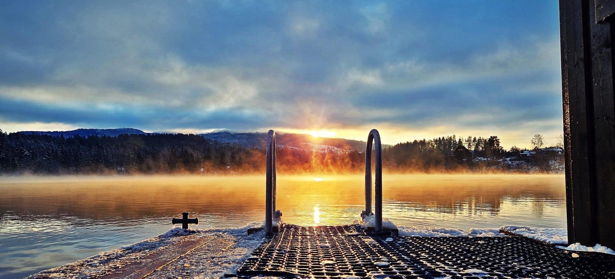 Når man er god og varm, er tiden inne for å hoppe i Randsfjorden for en frisk dukkert. Deretter går turen inn i badstua igjen. Det er en helt herlig følelse!